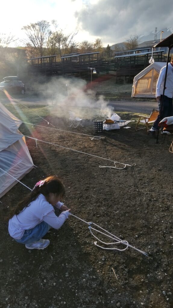 実際の所、テントの設営を終えるとこどもを遊ばせ戻ったらご飯の準備とほぼほぼゆっくりする間もなく1日が終わります。